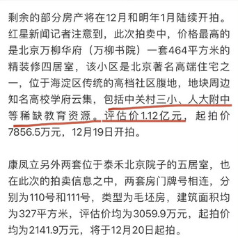 #河南一银行原董事长多套房产被法拍#,一共七套房!其中一套万柳书院豪宅,评估价过亿[并不简单]之前康凤立被查的时间开云官网切尔西赞助商,被爆患精神疾病须眉也可担保贷款260万元😮